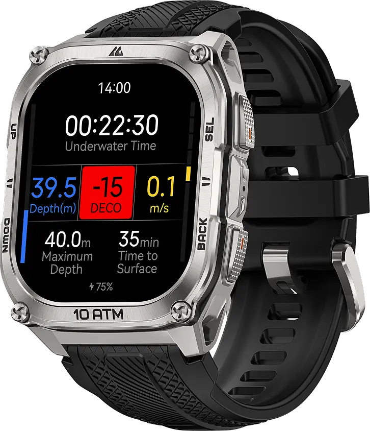 · Diving is an activity that requires caution and professional preparation. The KOSPET TANK T4 & M4 are designed for underwater exploration enthusiasts and feature 10 ATM water resistance with the Bühlmann ZHL-16C decompression algorithm, providing reliable assistance during your exploration.