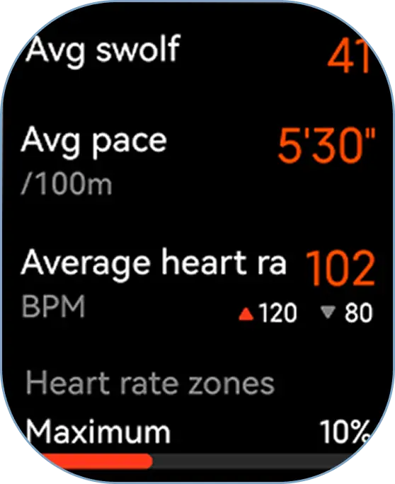 Record and stores your average heart rate and heart ratezones while swimming.